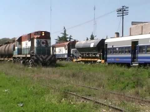 Mientras la 5284 espera autorización en el desvio, para entrar los coches de Línea San Martín al taller RIO.RO de Pérez, la ALCO RSD-16 8249 pasa ascendente con el tanquero por vía 1° con rumbo hacia Aceitera Chabás.